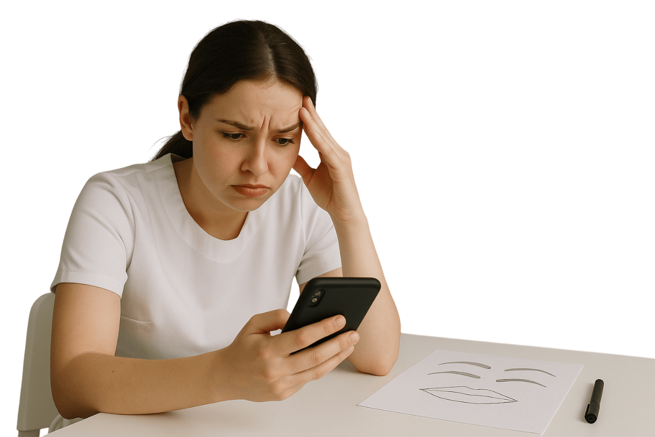 ❌ Terror de arruinar la cara de alguien: El miedo te paraliza. "¿Y si las cejas quedan disparejas? ¿Y si el color no queda bien?" No sabes manejar los errores y eso te impide empezar.